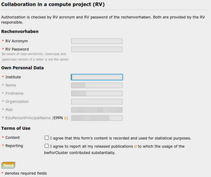 # Please visit the [https://zas.bwhpc.de/shib/en/bwforcluster_collaboration.php '''RV collaboration'''] web form at the [https://zas.bwhpc.de ZAS]. |