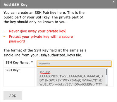 Here you can add and revoke SSH keys. To add a ssh key, please follow these steps: |